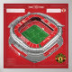 Wall Art & Décor: Stylized Old Trafford blueprint with red accents and labelled features.