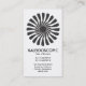 A stylish business card template with an attractive round geometric motif. Main company details on the front, with name and personal contact on the back.