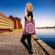 Beautiful quality tote bag in a heavy coated canvas. Shoulder strap is perfect length. Graphics are absolutely beautiful. The printing was great. The pink and black were perfect but the green didn't print as rich in color.