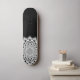 A vibrant white on black mandala skateboard with a stunning symmetrical pattern. Unique and bold symbol of the universe.