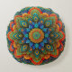 Mandala Blue Teal Colourful Illustration Round Pillow