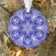 Ce mandala blanc se repose sur un arrière - plan bleu lumineux et profond. Les couleurs sont intelligentes et introspectives. Une partie de la collection de mandala de Howlsplann.