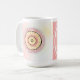Sip from a stylish mug designed with a mandala in soft colours of pink, yellow and white.