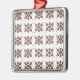 I was impressed by the quality and size of the ornament. Metal framing and design were perfect. Definitely recommend any of the metal framed ornaments. I ordered different ones all of the same quality and personalized professionally. Perfect No pictures as they were all gifts