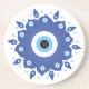 Mandala Greek Evil Eye Blue White Coaster
