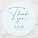 A lacy mandala pattern in a gradient of soft robin's egg blue and warm grey along with flowing script text give this elegant wedding suite it's luxurious appeal. The custom 'Thank You' confetti shown here allow you to easily edit the your initials and wedding date using the provided template. Search ID968 to see all the matching pieces in this beautiful wedding set.