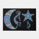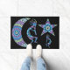 Mandala Moon Star Kokopelli Doormat. Southwestern star and moon. Kokopelli Rug Doormat Vivid blue colour combination that you can customize background colours to match your decor. Kokopelle Native American Indian cultures. Attributed to ancient aliens or tribal art and inspired by cave and rock drawings. Customize your Southwestern Style Native American door mat rug colours and styles. Great gift idea.