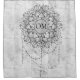 This massive , lotus mandala with its many ornate layers and fine chains dangling from it is the centerpiece on silver marble ceramic squares where mandala meets marble where in the middle of the lotus mandala is a sphere where you can personalize it with a letter, logo, name or just keep the letters OM creating zen-like vibes.
