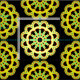 A pattern made up of an original kaleidoscopic mandala motif. This pattern can also be made larger, or smaller, it can be rotated and the background colour can also be customized.