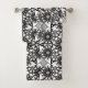 Towel set in a twelve point mandala pattern in shades of graphite and silver grey, accented with black and white