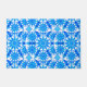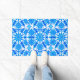 Doormat in a twelve point mandala pattern in shades of cobalt and cerulean blue with turquoise and aqua, accented with white