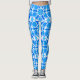 Leggings in a twelve point mandala pattern in shades of cobalt and cerulean blue with turquoise and aqua, accented with white