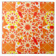 Twelve point mandala pattern tile in shades of deep to medium coral orange with mustard gold and white accents