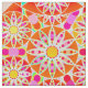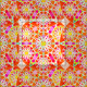 Twelve point mandala pattern in coral red, shades of pink, lime green and gold