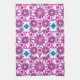 Serviette de cuisine dans un mandala motif en douze points dans les tons rose, rose chaud / fuchsia, noir et blanc accentué de bleu cobalt