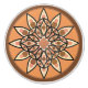 Twelve point mandala pattern in shades of tan, chocolate, terracotta, black and rust with a chocolate background