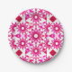 Twelve point mandala pattern in shades of pale to hot pink with a maroon / burgundy background
