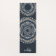 An artistic abstract geometric symmetrical pattern flowery mandala style yoga mat, with name in a script typography