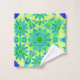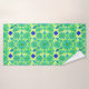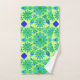 Towel set in a twelve point mandala pattern in turquoise, blue, and shades of lime green accented with royal blue