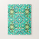 Mandala Pattern, Turquoise, Silver Grey and White Jigsaw Puzzle