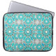 Mandala pattern, turquoise, silver grey and white laptop sleeve