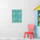 Print of a twelve point mandala pattern in turquoise, blue, white, and shades of grey / grey on a pale, silver grey background