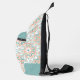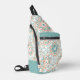 Mandala pattern sling bag in peach, teal, orange and white with optional personalization with a monogram in your choice of font styles, size and colour with coordinating solid teal accents. Change or delete the sample text and circle frame in EDIT. ASSISTANCE: For help with design modification or personalization or if you would like coordinating items, contact the designer BEFORE ORDERING via the Zazzle Chat MESSAGE tab below or email makeitaboutyoustore@gmail.com.