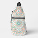 Mandala pattern sling bag in peach, teal and white with optional personalization with a monogram in your choice of font styles, size and colour. Change or delete the sample text and circle frame in EDIT. ASSISTANCE: For help with design modification or personalization or if you would like coordinating items, contact the designer BEFORE ORDERING via the Zazzle Chat MESSAGE tab below or email makeitaboutyoustore@gmail.com.