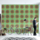 Mandala Red Yellow Orange Brown on Green Background.