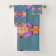 Pretty Mandala striped towel set to match shower curtain and bath mat. The colours are teal, purple, gold and cream. Thanks to Creative Fabrica for some of the elements in the design.