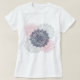 T-Shirt with dark blue, pink and grey mandalas graphic illustration.