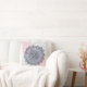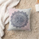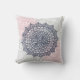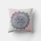 Throw Pillow with dark blue, grey and pink mandala graphic illustration.