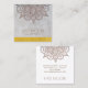 Mandala with silver background and gold metallic edge, yoga or holistic profession business card. A subtle neutral textured grey with striations of grey, metallic gold and a lovely modern sans serif typeface. This card was inspired by Indian Sari fabrics, but realized as a neutral palette rather than a bold palette. Subtlety with a metallic accent flair. Ideal for a yoga instructor, massage therapist, spa services and more. A unique low key blend of neutral and strong gold. This design is best showcased on a glossy card stock.