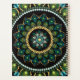 Un imprimé d'art représentant un mandala aux couleurs vives. Peinte à la main par l'artiste française Annabelle Pineau selon une technique d'art à points, l'oeuvre originale a été peinte sur toile avec une peinture acrylique de haute qualité. Les couleurs vives et intenses, vert et bleu, sont contrastées par un arrière - plan noir pour plus d'intensité. Maintenant disponible sous forme d'imprimé d'art. Les mandalas sont des représentations symboliques du cosmos, utilisées par une multitude de traditions spirituelles comme outil de méditation, illustrant le mystère de la vie à travers des formes géométriques, avec des couleurs vives. Cette oeuvre d'art féminine et minimaliste ferait un cadeau unique et peut également être utilisé comme décor de mur de bois pour votre maison ou studio de yoga.