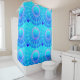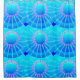 Abstract mandala pattern shower curtain in a satin gradient of overlapping discs centring around a spoked wheel of stars - shades of turquoise / peacock and aqua, accented with soft violet