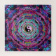 A teal, purple and blue mandala featuring a yin yang in the middle by Amelia Carrie.
