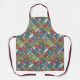 Graphic of assorted mandalas within square and rectangular shapes in a tiled design, warm muted colours, seamless repeat pattern