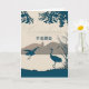 The card front Mandarin Chinese characters are the equivalent of "My condolences" or "I am sorry to your loss" in English. Two cranes on the water's edge in teal blue and soft taupe hues on the mountains in the background create a lovely sympathy card in Mandarin.