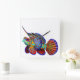 Design d'art original d'un Mandarin Dragonet ou Goby coloré par l'artiste Carolyn McFann de Two Purring Cats Studio imprimé sur une horloge murale de qualité et personnalisable pour les amateurs de poissons de récif corallien et d'aquarium d'eau salée.