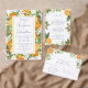 Mandarin oranges, leaves and blossoms. You can change the font and font colour. The invitation has a matching orange pattern on the back.
