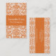 Mandarine et carte de visite blanc de damassé