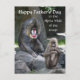 Father's Day postcard featuring a beautiful photograph of an alpha male Mandrill monkey with colourful red and white face sitting behind a young Mandrill monkey. Customizable message reads: Happy Father's Day to the Alpha Male of the troop. Change or remove the type on the product page