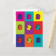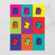 Pictures of maneki neko cat, also known as Fortune cat, done in a rainbow of colours in a pop art style on a postcard