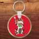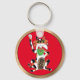 Maneki Neko Lucky Cat Right Paw Raised Red Gold Keychain