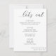 Ceci...le menu "let's eat" est le design minimal parfait pour un élégant petit déjeuner de mariage ou un dîner à la réception. Tous les termes sauf 'mangeons' peuvent être modifiés.