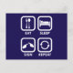 Manger. Dormir. Plaque. Recommencer. Carte postale