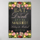 Signe de bienvenue de mariage vintage floral sur ardoise de 15" x 24" ; Mangez, Buvez & Soyez Mariés !