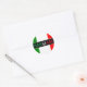 This custom sticker label features the phrase "mangiare" printed across the center. Mangiare is the Italian translation for "eat" and it is printed in the colors of the flag of Italy. The first three letters are green, the second two are white, and the final three are red. It is printed across the Italian flag.