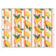 This seamless pattern tablecloth features ripe, golden mangoes with fresh green leaves arranged over hand-painted-style horizontal stripes in light peach and white. The background has a textured, distressed finish, creating a rustic, summery feel that blends natural charm with artistic flair. Perfect for tropical, farmhouse, or fruit-inspired designs with a warm and casual aesthetic.