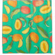 Mango. Seamless pattern with yellow and red tropical fruits and pieces on green background. Bright summer vintage illustration.